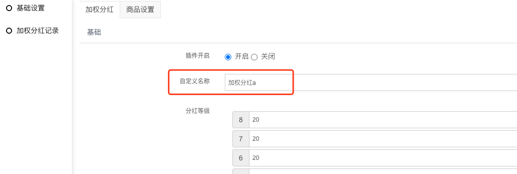 2) 自定义名称:设置后前端的加权分红字样随设置改变